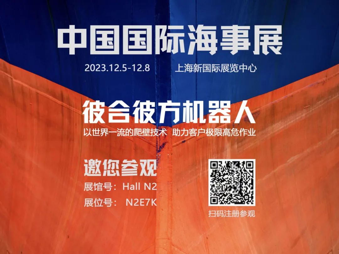 新品首秀,精彩无限。为参展观众献上科技盛宴的同时,彼合彼方还准备了好礼相赠,诚邀您莅临N2馆N2E7K展位,加入这场智慧修造之旅,亲身感知爬壁机器人技术为船舶海事行业带来的巨大变革。