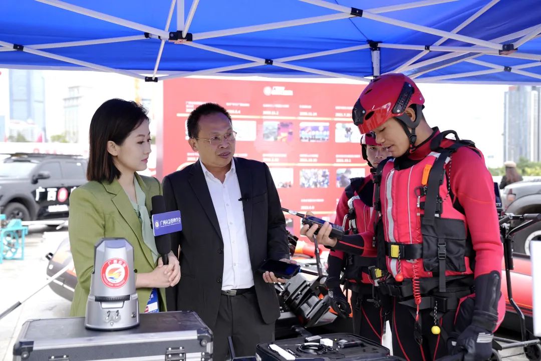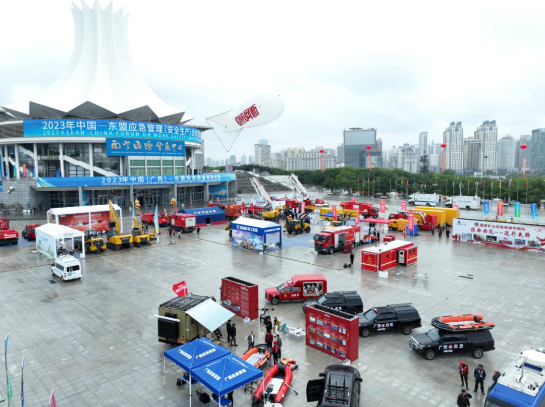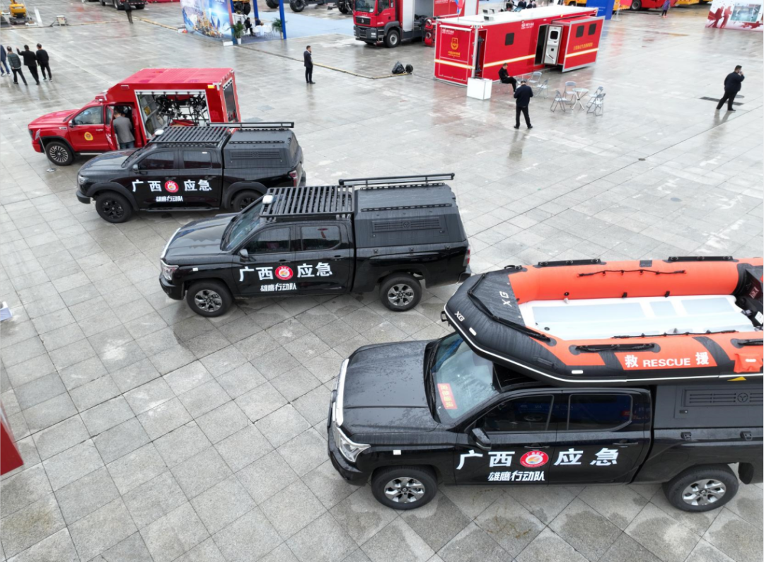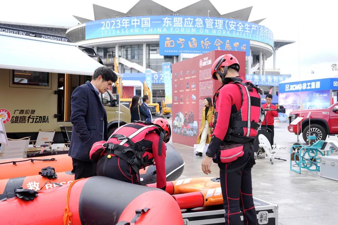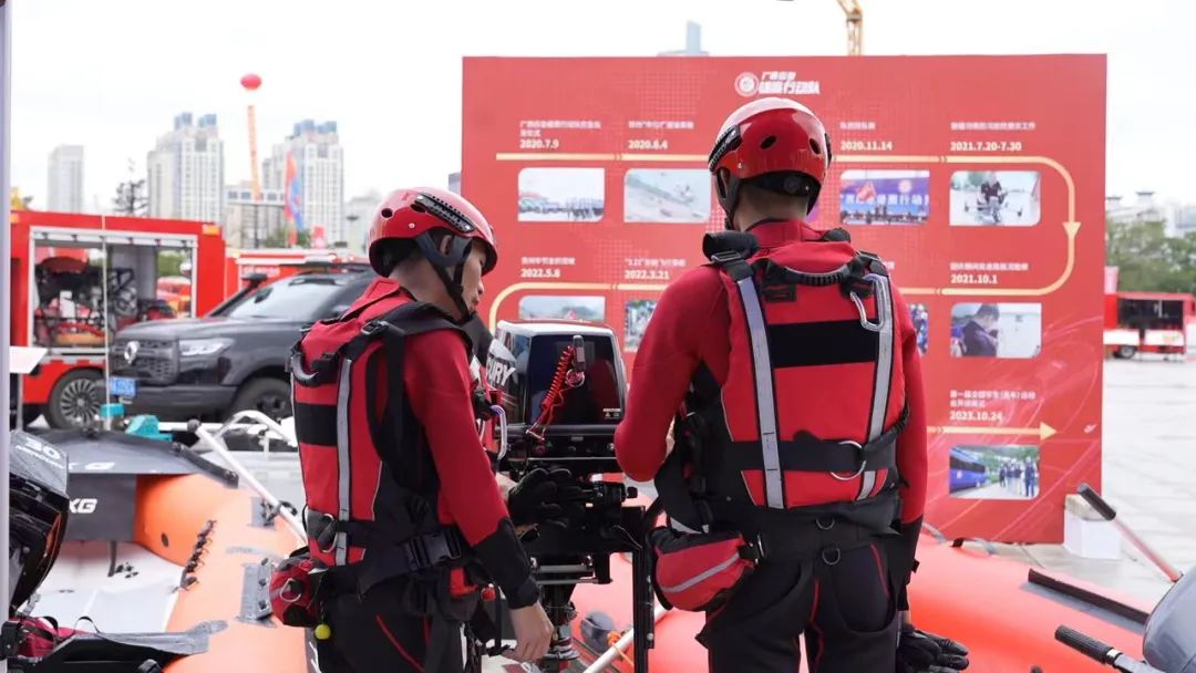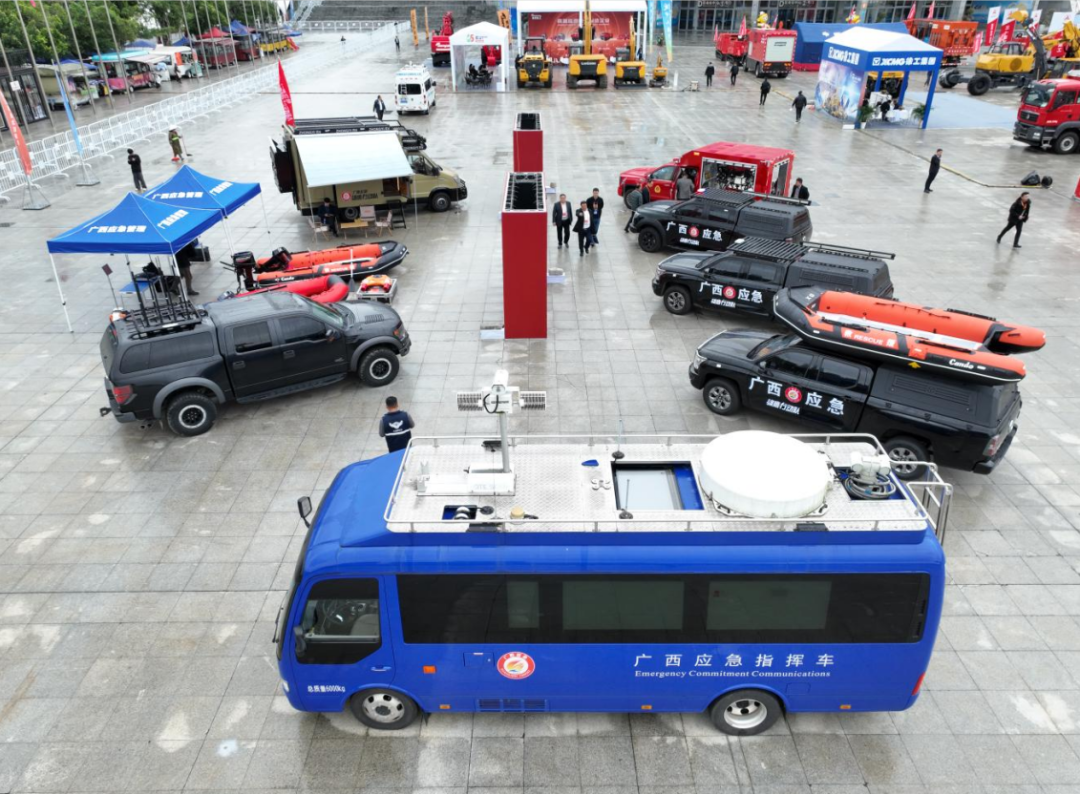 在外广场W-017展位上,广西应急雄鹰行动队充分展示了桂东、桂南、桂西、桂北、桂中等5大区域和10个重点县开展应急救援数字化战场建设,携带无人航空器、无人飞艇、高通量卫星便携站、便携指挥调度箱、布控球、单兵、自组网、便携气象站、LoRa、北斗卫星终端、卫星电话、对讲机、发电机、水下机器人、救生艇、救援指挥车等多套“高、精、尖”设备。
