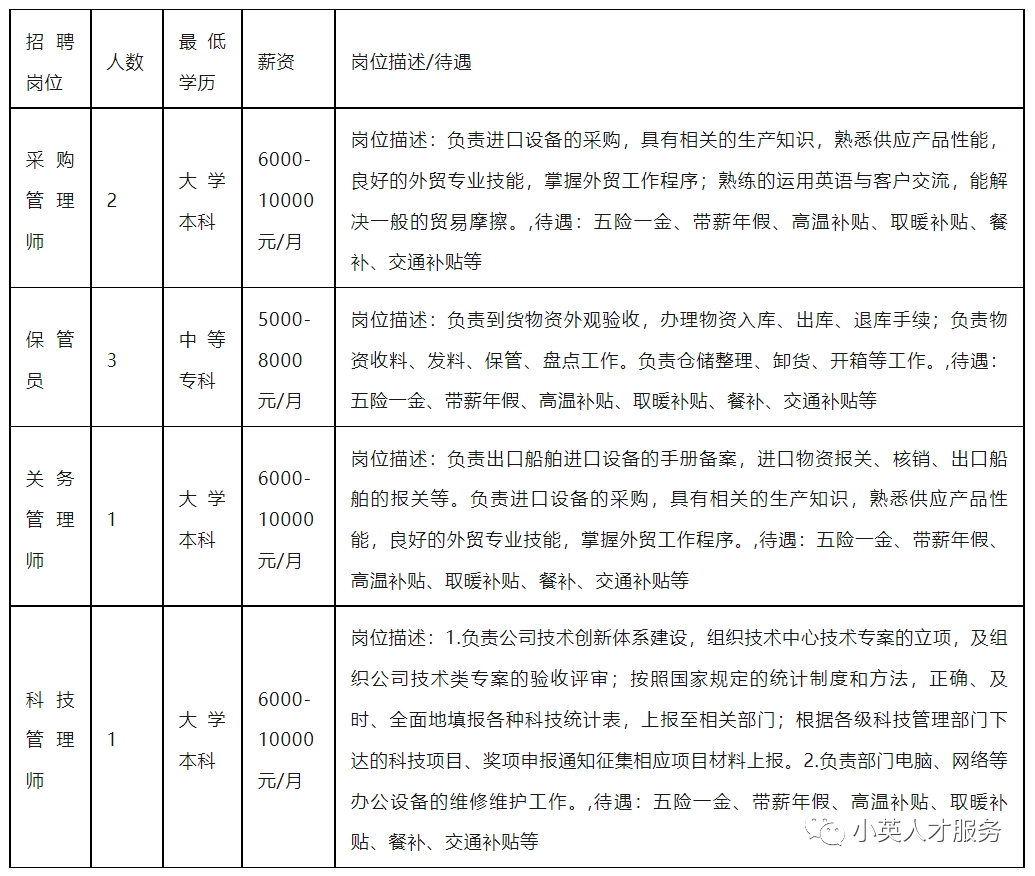 招聘岗位和要求