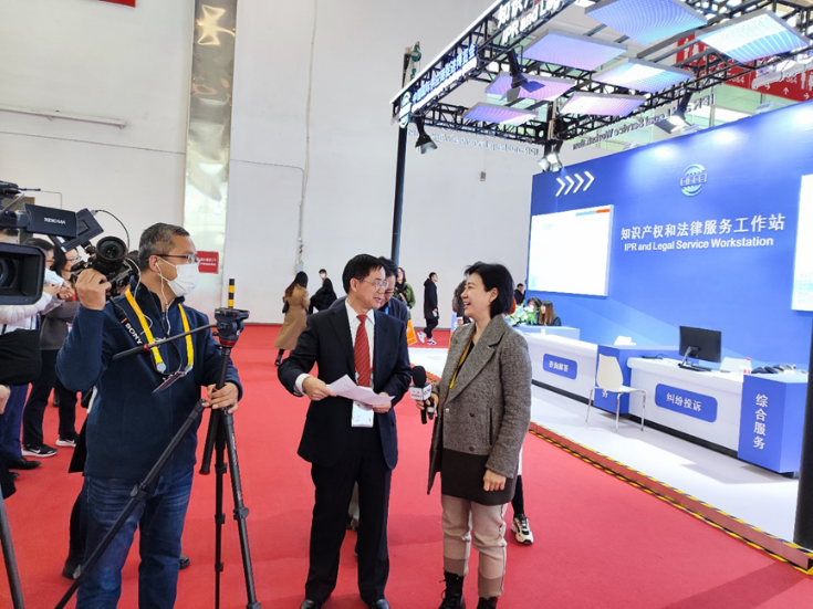 2023年11月29日下午两点半,链博会商事法律服务展台的专利和商标申请受理窗口开始首次现场办公。港专公司作为链博会合作伙伴单位之一,积极响应并参与链博会知识产权和法律服务保障,为参展企业的知识产权保驾护航。我司总经理、中国知识产权研究会副理事长、国际保护知识产权协会中国分会副会长吴玉和亲临现场指导工作,并接受媒体采访。