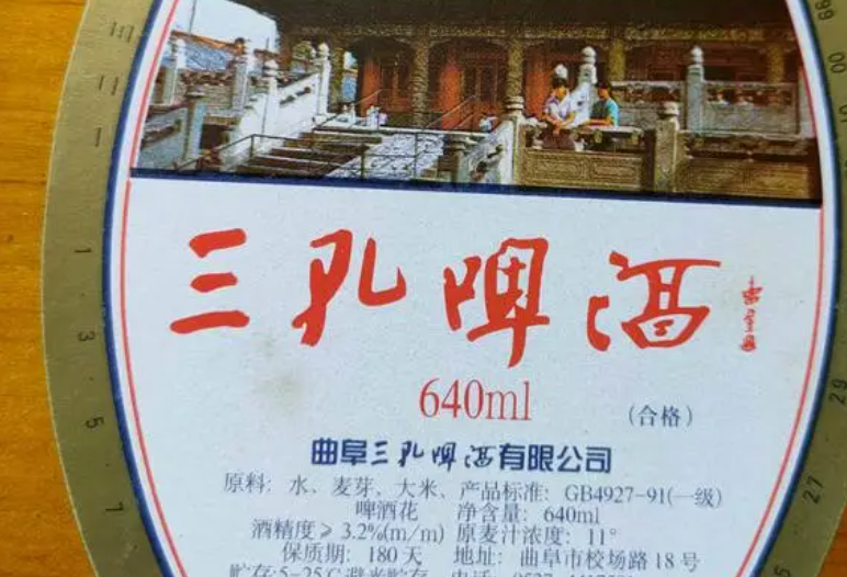 看品牌就知道此酒酿于孔子的家乡曲阜,当年曲阜是生产化肥的大户,后来到了八十年代化肥厂倒闭,正好利用原有的厂房开始酿造啤酒,所以1984年曲阜也有了自己的三孔啤酒,只可以最后被青岛啤酒给收购了。