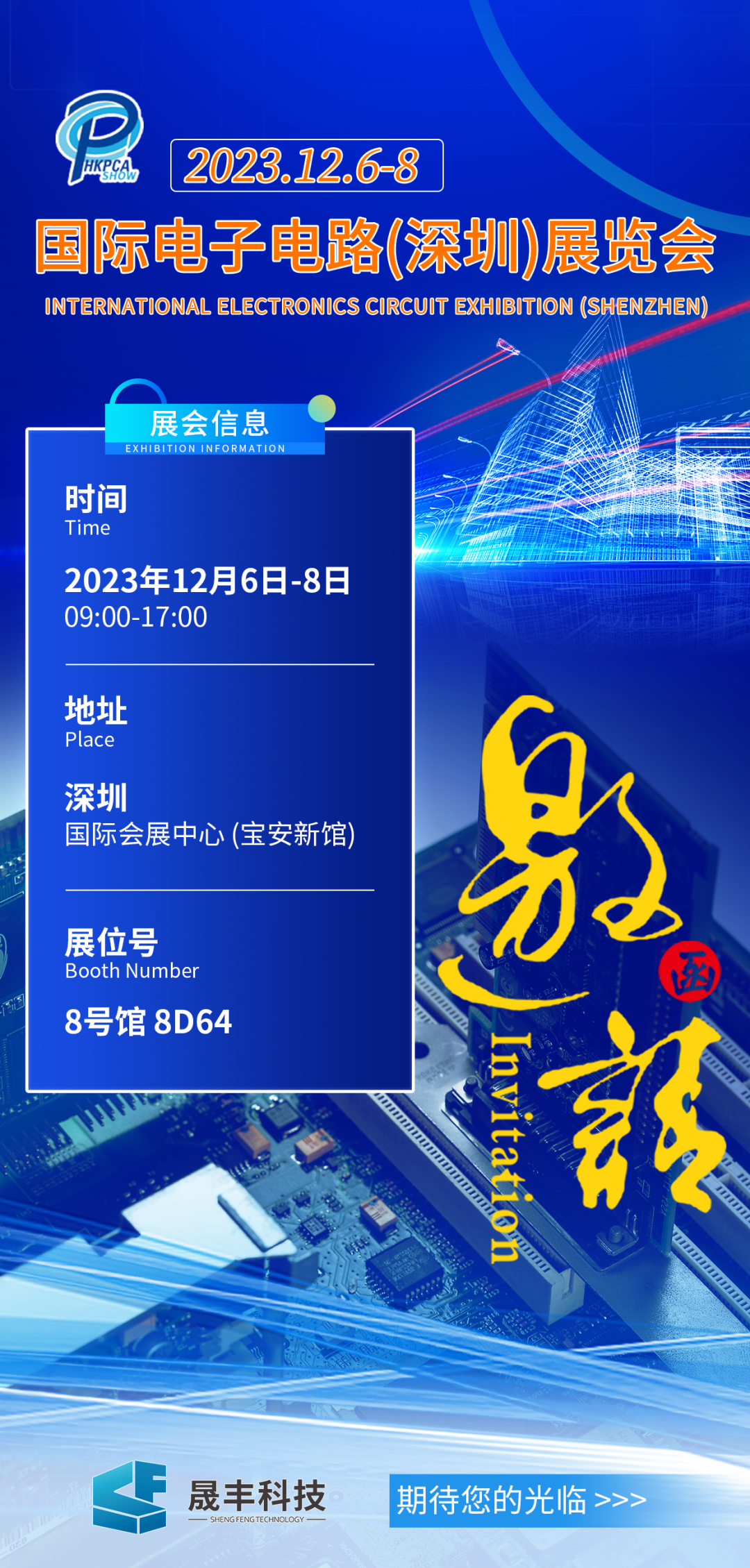 东莞市晟丰科技有限公司将于2023年12月6-8日,在深圳国际会展中心(宝安)8号馆,展位号8D64,2023年HKPCA SHOW国际电子电路展览会,预计本次展览面积达7万平方米!全球最具影响力及规模之一的线路板及电子组装行业盛会,我司在此诚挚邀请您莅临现场参观指导,并已准备无尘耗材与净化设备在展会恭候您的大驾光临,期待您的到来!