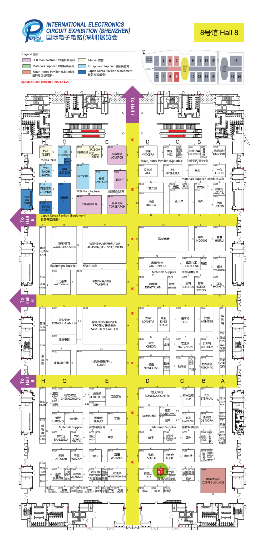 (可点击放大缩小)绿色区域为我司展位位置