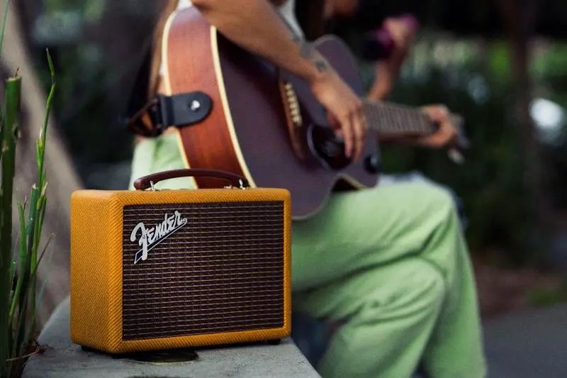 Fender indio2:是一款复古便携式蓝牙音箱。以Fender经典吉他AMP作为设计蓝本,拥有DUO MOOE模式立体声效和自定义高低频调节按钮,助你实现BGM自由。