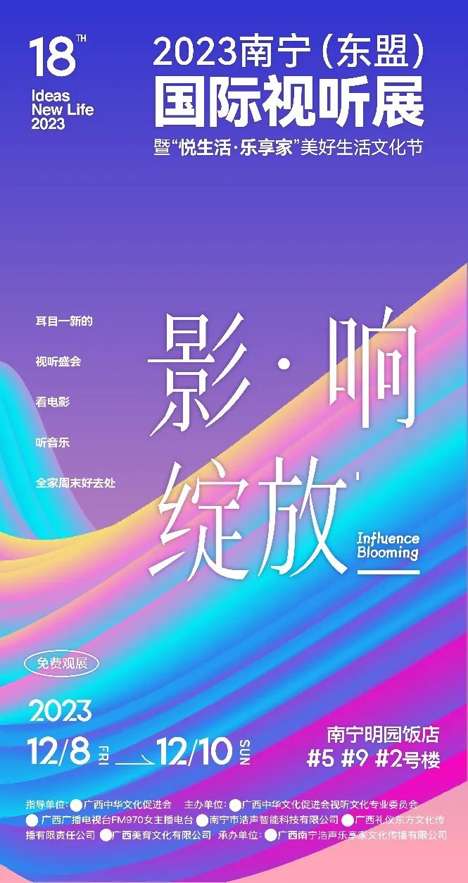 2023第十八届南宁(东盟)国际视听展暨“悦生活·乐享家”美好生活文化节,将于12月8-10日,在广西南宁明园饭店隆重举办!本次展会,洪陆科技将携多款HIFI音箱、功放及黑胶唱机等热门产品参展,体验拨动心弦的HIFI音色,和沉浸式多元化现代家居美学。
