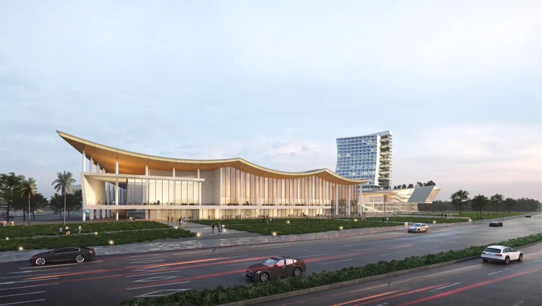 汕头国际会展中心及配套酒店项目总投资约19.1亿元,建设内容包括汕头国际会展中心和五星级酒店,外观设计以“潮起逐浪、扬帆起航”为主题,风格飘逸。