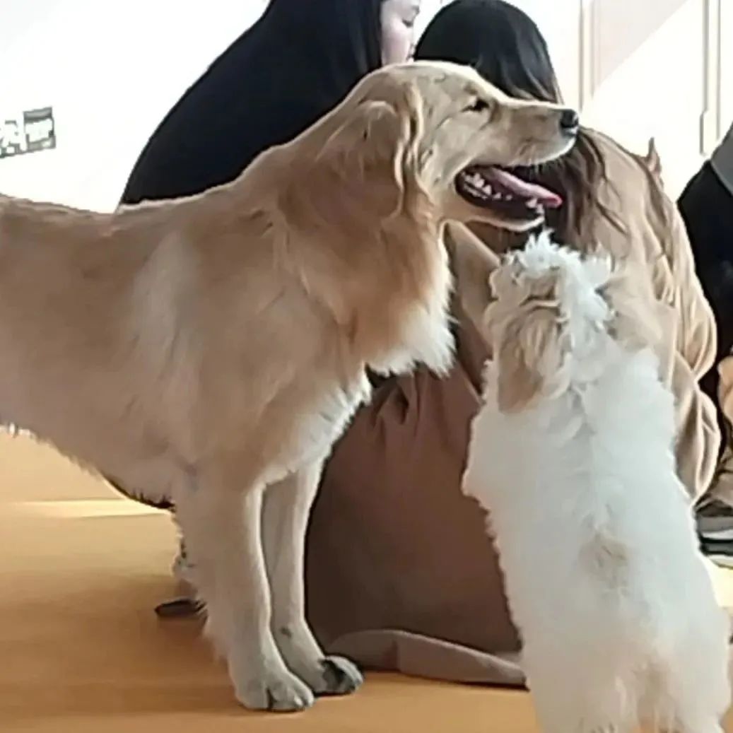 狗狗们兴奋地摇尾巴、舔嘴唇,互相嗅探着彼此,甚至一起玩耍。它们用各种声音和肢体语言交流,彼此分享着欢乐和兴奋。这些互动不仅使宠物们更加开心,也给它们提供了社交的机会。