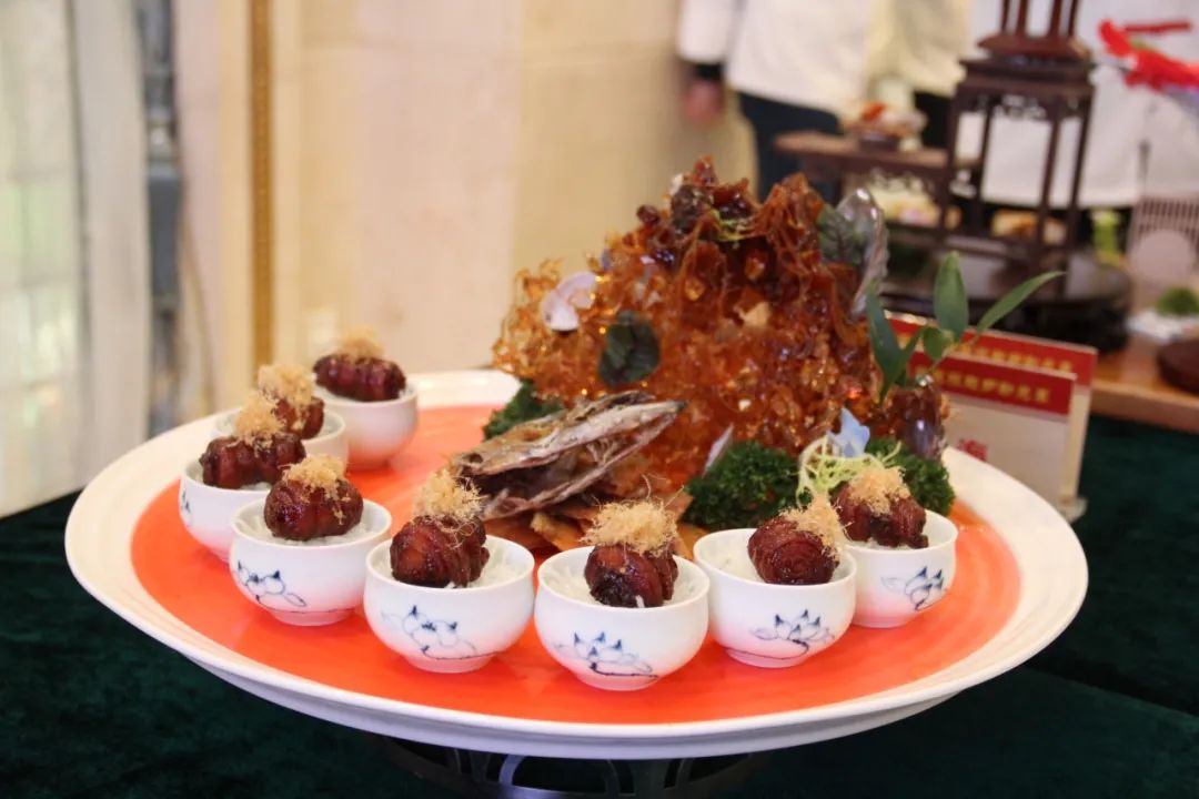 热菜制作二等奖:聚鑫阁(兰坪店)橙香牛仔粒、沪华大酒店 龙腾四海