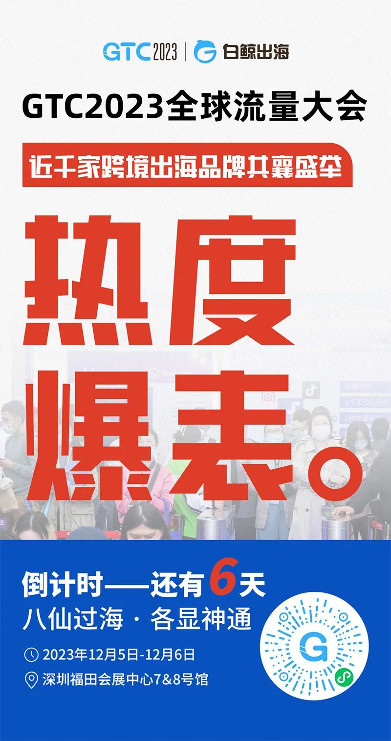 GTC2023全球流量大会,是由白鲸出海主办的跨境出海领域年度行业盛会。以“展”+“会”,打造大规模行业级盛会,为更多国内优质企业带来行业干货和资源储备的同时,也为广大参会观众带来一次福利满满、干货满满、看点满满的参展体验。作为一家致力于服务中国泛互联网企业走向海外的综合服务平台,白鲸出海一直在探索如何以更好的方式去帮助国内企业踏上出海航程。而 GTC 全球流量大会,也在这样的初衷下被提出并在 2018 年正式在深圳成功落地举办。