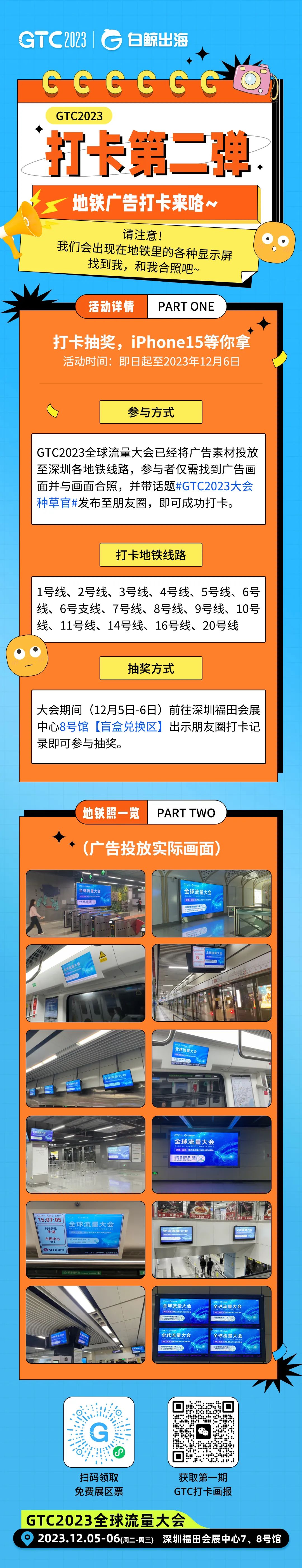 盲盒抽奖、品牌纪念品、活动抽奖、城市打卡、朋友圈打卡……多种多样的互动玩法,进一步丰富了大会内容,奖品包括iPhone15、Switch、现金红包等各类“惊喜”,不玩虚的,GTC2023主打一个好玩实用!以目前正在进行的打卡活动为例,如果您目前身处深圳,可以参与由GTC2023发起的地铁打卡活动。