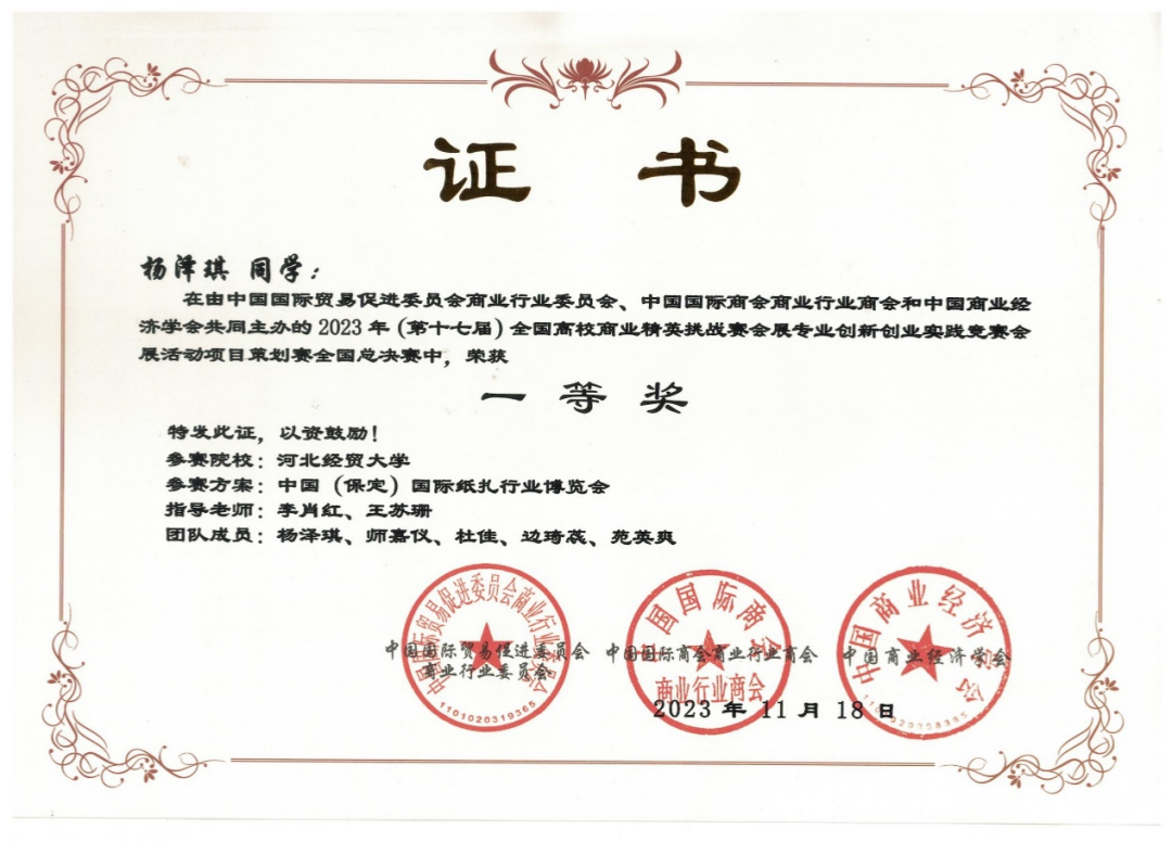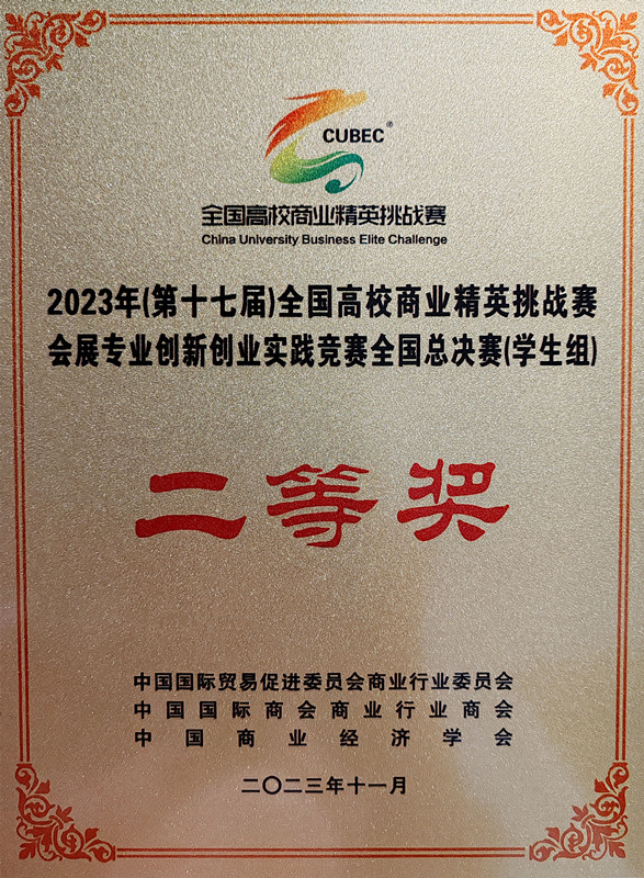 2023年11月13日,第十七届全国商业精英挑战赛会展专业创新创业竞赛总决赛比赛结果公布,旅游学院会展经济与管理专业两支队伍分别获得了全国总决赛一等奖和全国总决赛二等奖的优异成绩。