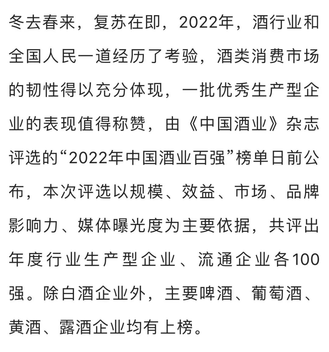 2022中国酒业百强榜(生产企业)发布,“汾酒、汾阳王”位立其中