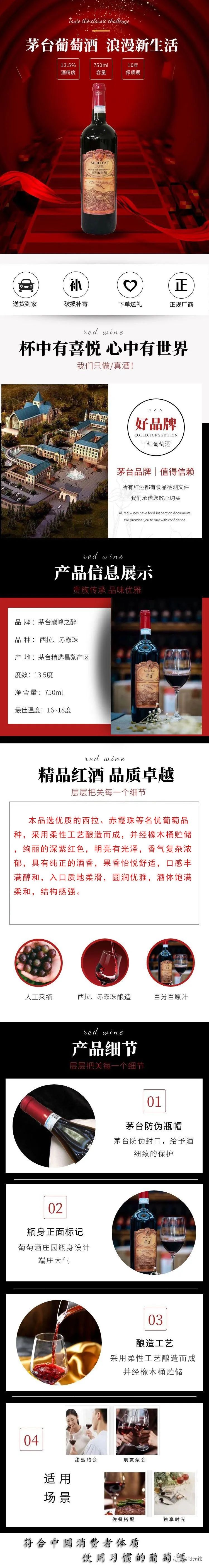 茅台葡萄酒 巅峰之醉干红葡萄酒13.5度 木箱装 买就送 茅台美乐世界干红 13度 6支装