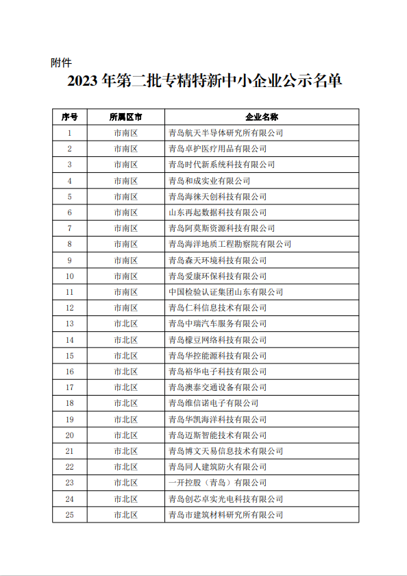 根据工信部《优质中小企业梯度培育管理暂行办法》、《青岛市优质中小企业梯度培育管理实施细则》和《关于组织开展2023年第二批创新型中小企业评价和专精特新中小企业认定工作的通知》要求,经企业申报、区市推荐、第三方机构审核等程序,拟认定青岛建科暖通工程设备有限公司等302家企业为2023年第二批专精特新中小企业,现将名单(见附件)予以公示。