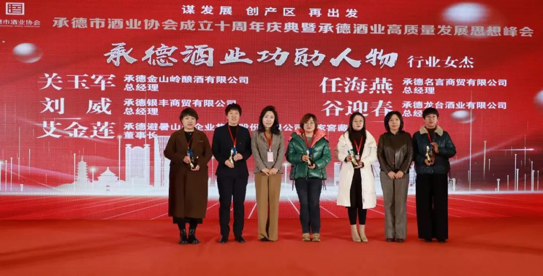 11月25日,“承德市酒业协会成立十周年庆典暨承德酒业高质量发展峰会”在承德市兆丰酒店隆重举行。承德龙台酒业有限公司作为承德酒业协会的理事单位也非常荣幸的参加了此次盛会。在峰会上龙台酒业董事长李杰被表彰为“行业功勋领导人”;龙台酒业总经理谷迎春被表彰为“行业女杰”;龙台酒业生产副总经理苏刚被表彰为“行业技术领军人”。