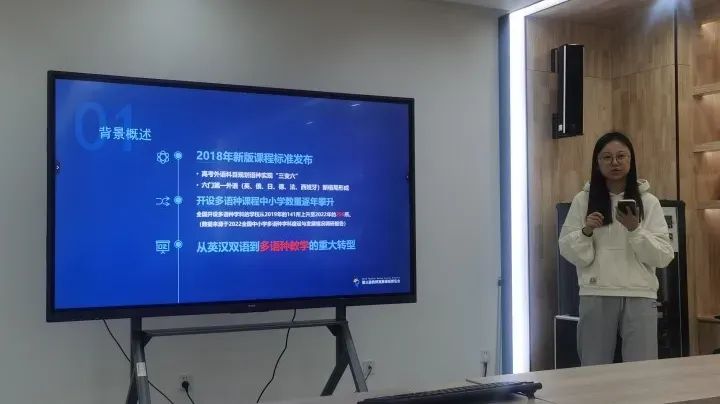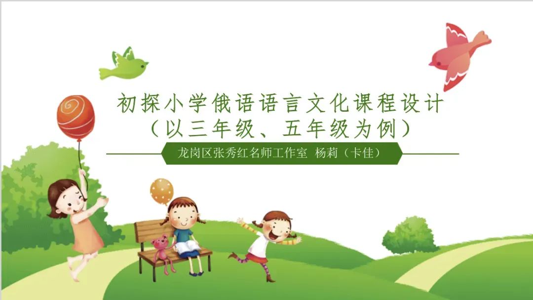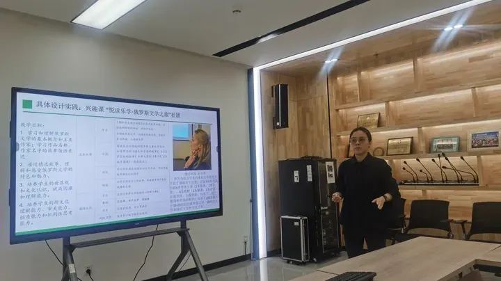 进行首位课题分享的是仙田外国语学校俄语教师杨莉,她的研究主题为《初探小学俄语语言文化课程设计》。