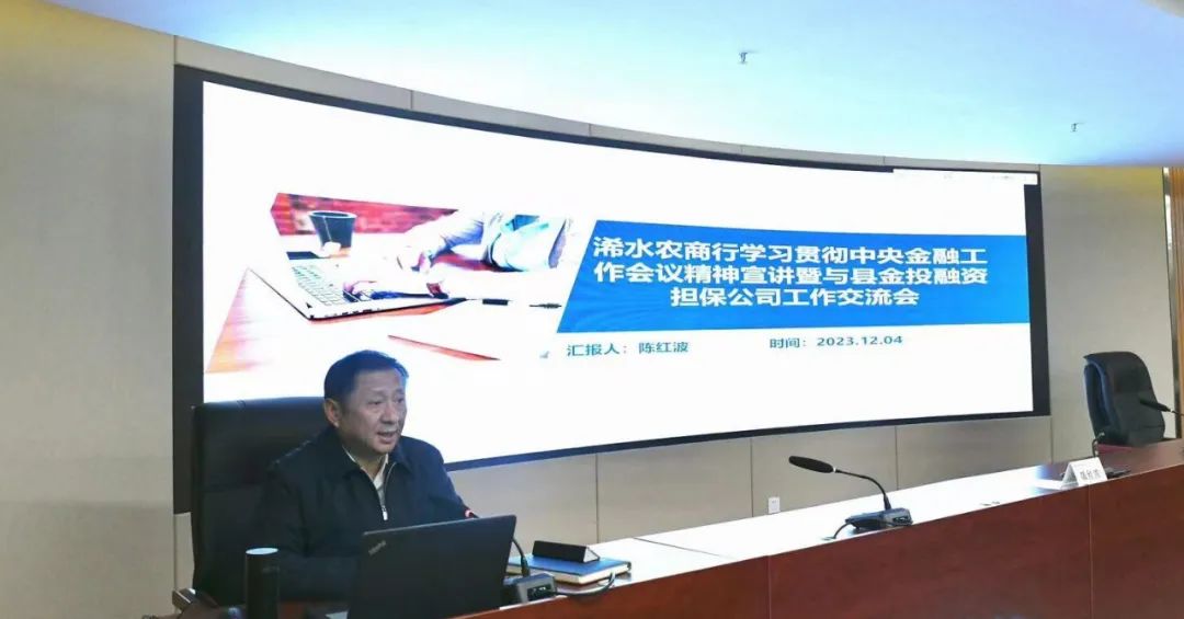 为优化金融服务,防范化解风险,坚定不移走中国特色金融发展之路,推动浠水农商行高质量发展,12月4日,浠水农商行在县行3楼会议室组织召开学习贯彻中央金融工作会议精神宣讲暨与县金投融资担保公司工作交流会。
