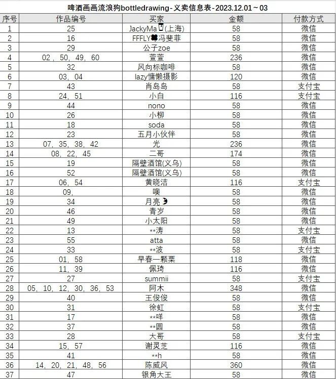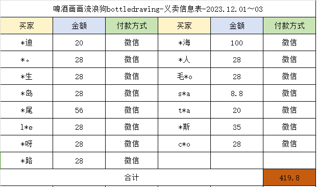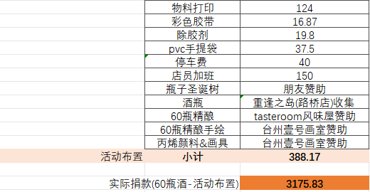 以下是义卖活动明细: