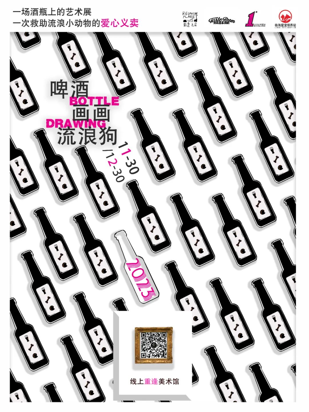 为了让更多人关注到这些艺术品,重逢之岛以跨媒体(Transmedia)的形式,化身为【线上重逢美术馆】,举办了这场救助流浪小动物的特别展览:《 啤酒 画画 流浪狗 | Bottle Drawing 》