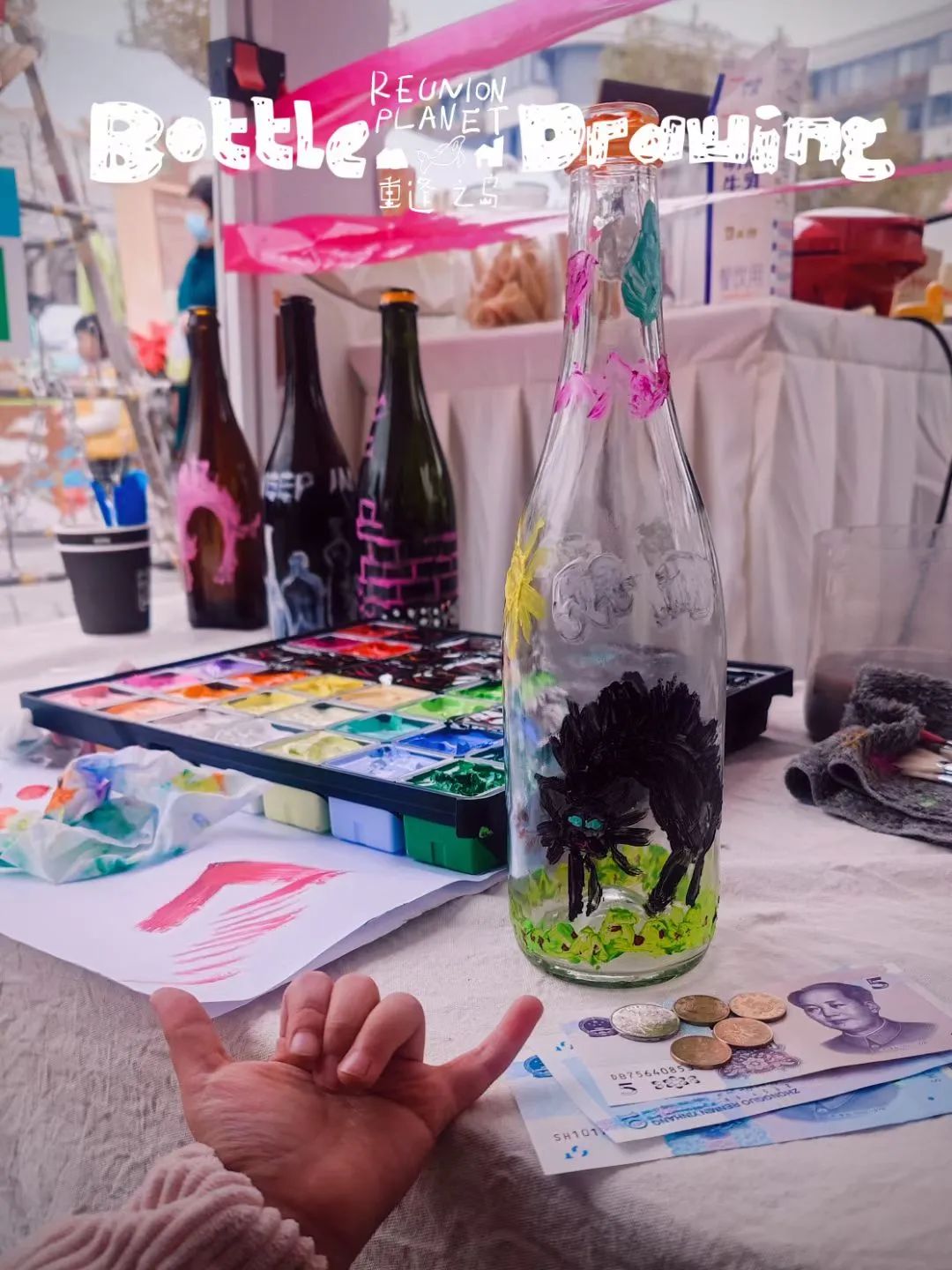 ??这是一小姑娘,带现金来画瓶子