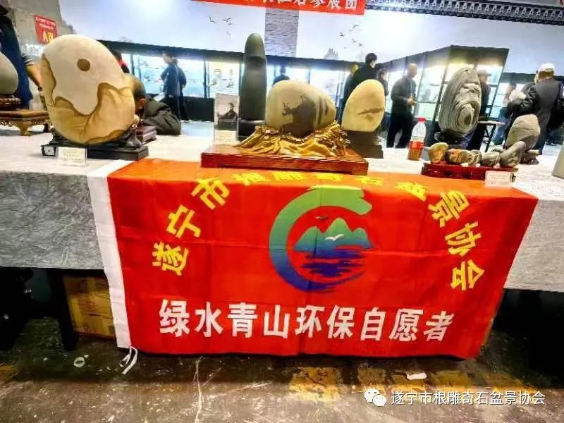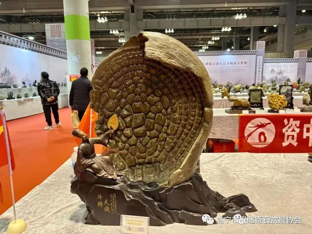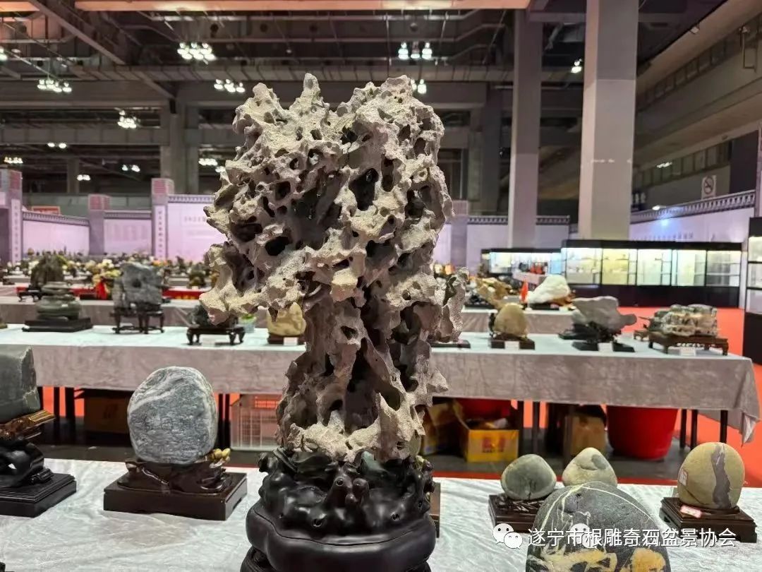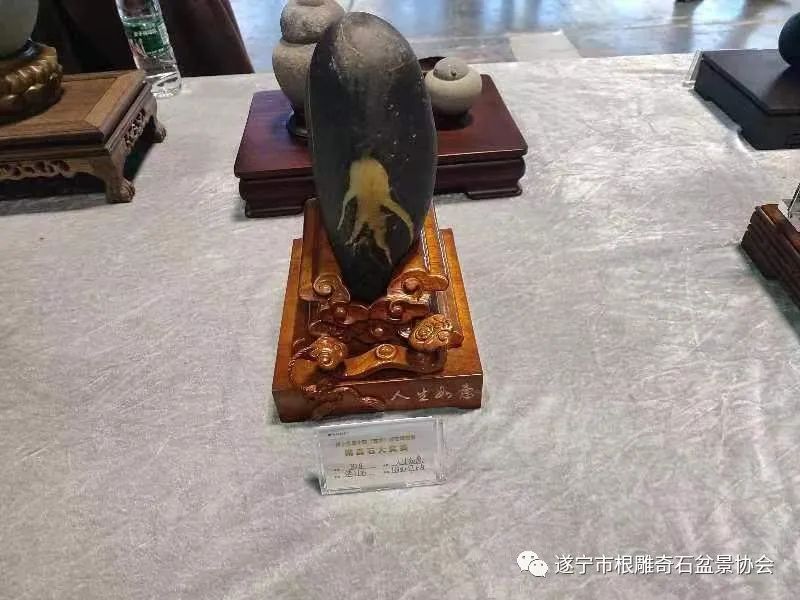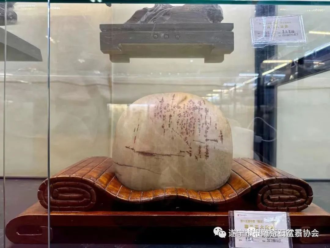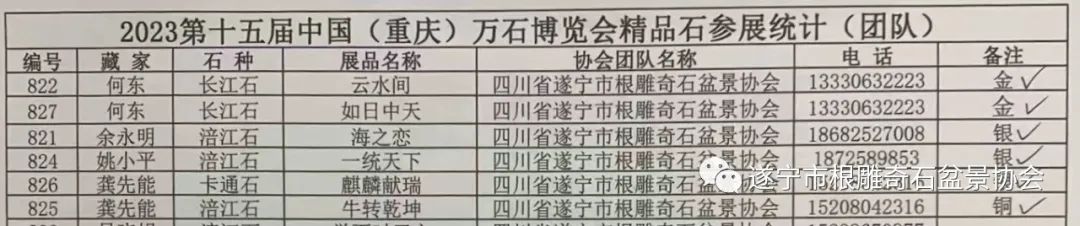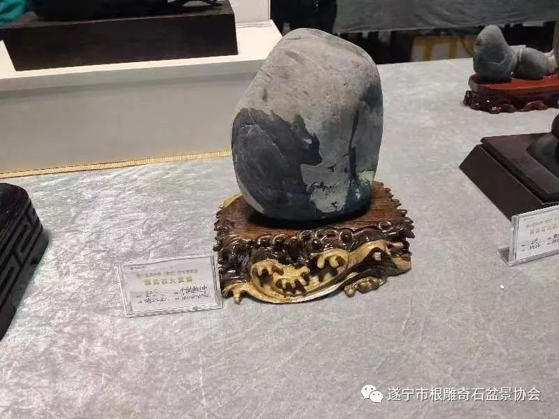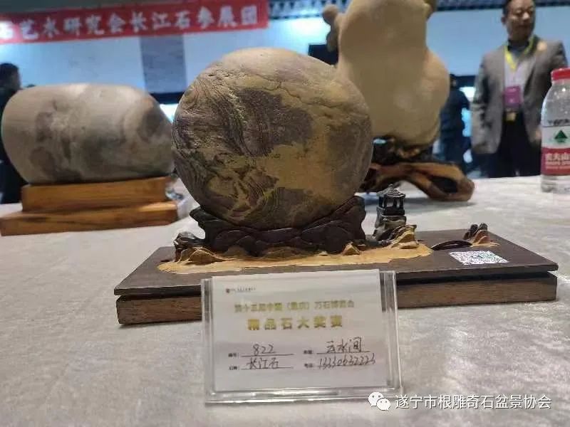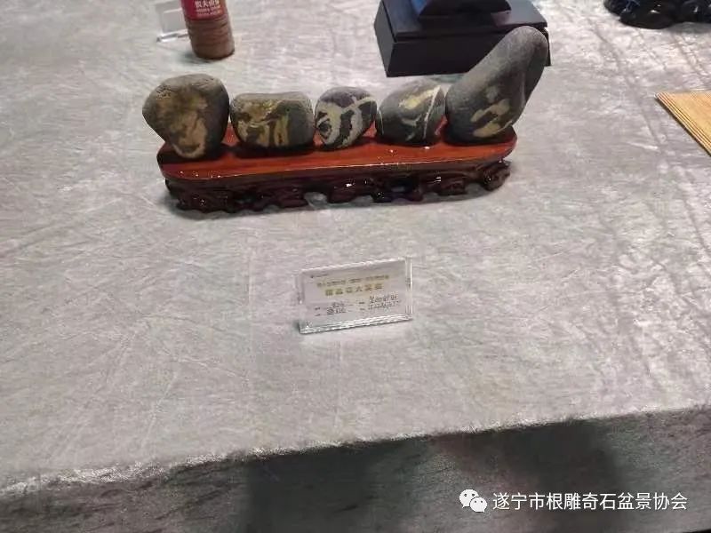 遂宁市根雕奇石盆景协会送展的八方精品石,其中,六方分别荣获金、银、铜奖: