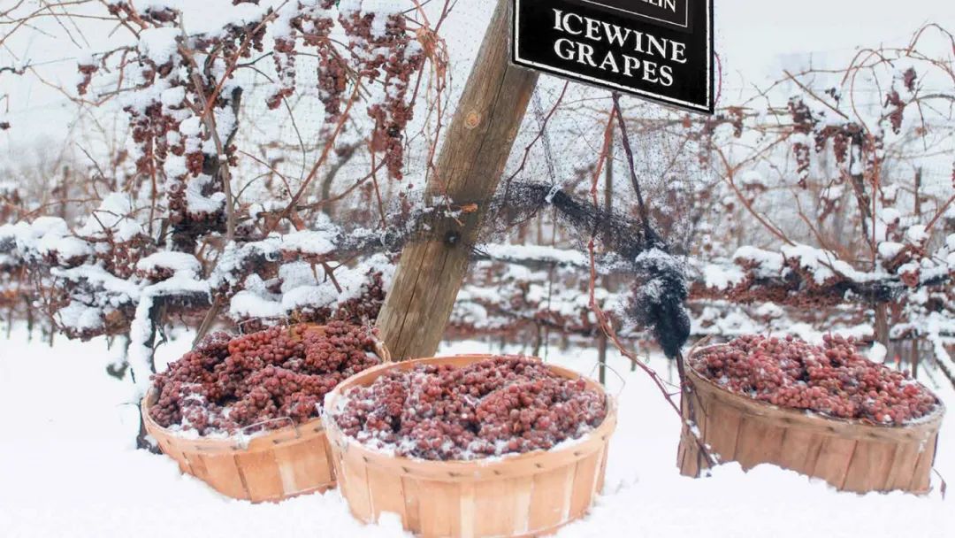2、冰酒:是推迟采摘,在气温低于-8度下,葡萄结了冰才采收,带冰压榨,得到高糖葡萄汁来酿葡萄酒。代表:加拿大冰酒,德国冰酒。