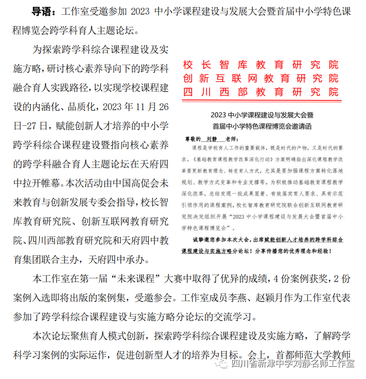 【教研动态】工作室受邀参加首届课博会跨学科育人主题论坛