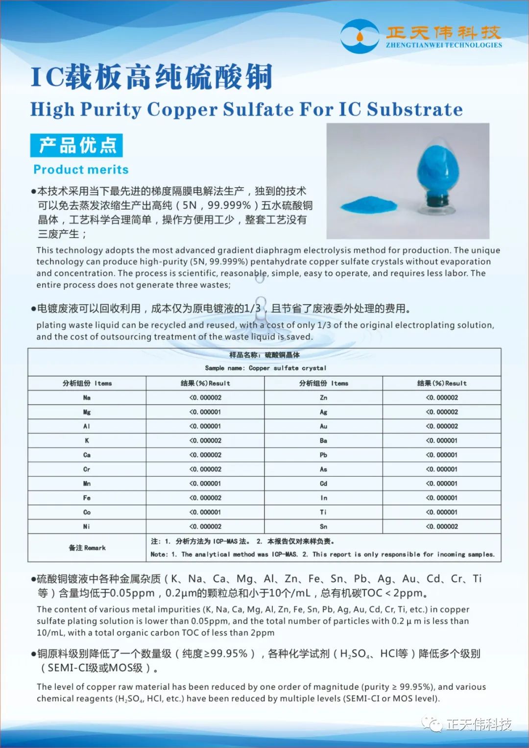 正天伟科技创立于2000年,是一家集复合电子化学品、高纯度化学材料研发、生产、销售及服务于一体的现代化国家高新技术企业。产品涉及半导体制造、电路板制造、光伏太阳能、新能源电池等多个细分制造领域。