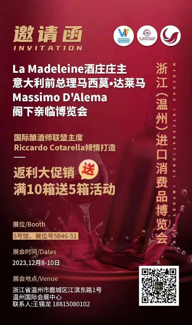本次展会,La Madeleine酒庄庄主,意大利前总理马西莫·达莱马先生(Massimo D'Alema)也将亲临现场!他将为我们分享国际酿酒师联盟主席Riccardo Cotarella倾情打造的美酒。这无疑是一个与大人物零距离接触的难得机会。