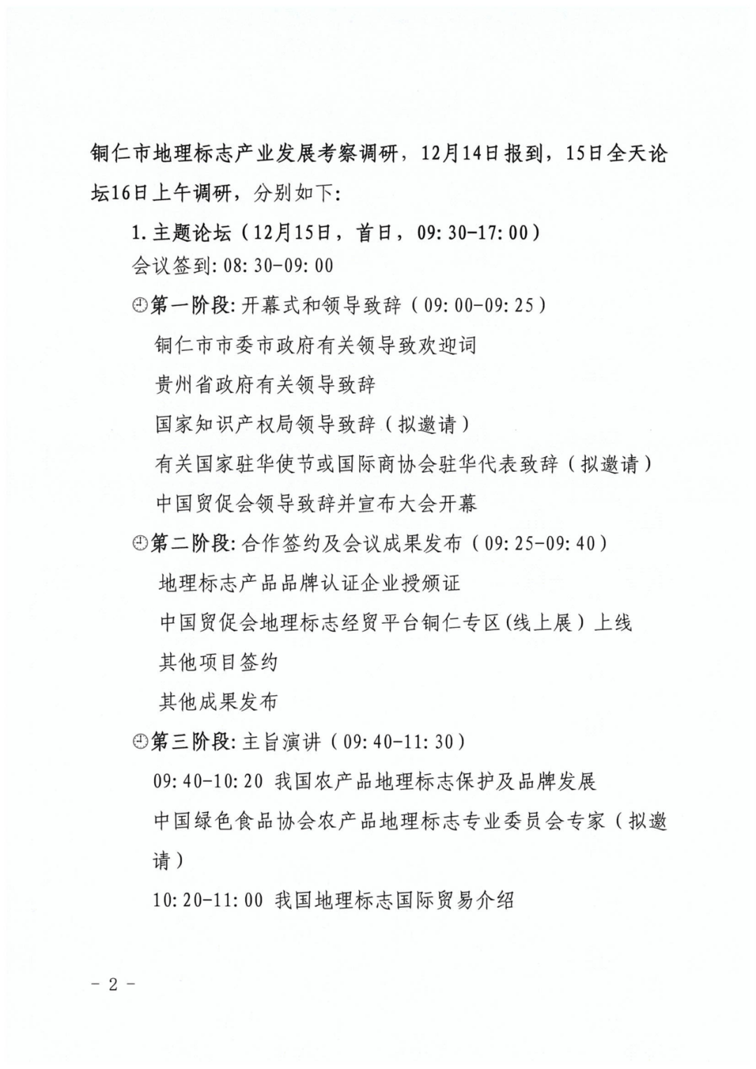 为全面落实党的二十大精神,扎实推进贯彻党中央、国务院全面加强知识产权保护的决策部署,打造我国地理标志产品国际品牌,拓宽地理标志品牌分销模式和渠道,提升地理标志、商标品牌转化运用水平,促进地理标志产业可持续发展,中国贸促会贸易推广交流中心将于2023年12月14日至12月16日在贵州省铜仁市举办梵净山国际地理标志论坛。大会突出国际化、专业化、品牌化功能,以“专业论坛+现场展示”形式举办,届时将邀请国家相关部委负责人、地方政府代表、有关国际组织、国家驻华使节以及商协会代表、国内外地理标志领域专家学者和企业参会。为充分发挥大会的平台作用,促进中国与境外地理标志的双向贸易投资交流,诚邀地理标志管理、生产、贸易、采购及配套服务类的有关单位和企业参会。