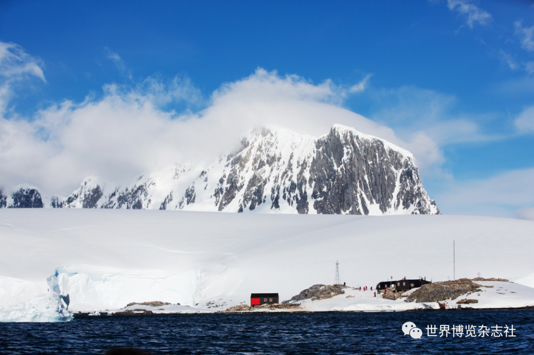 拉克罗港位于古迪埃尔岛上,小岛背倚连绵起伏的雪山,白云缭绕,雪山下面条条冰川汇聚在岸边,洁白的雪地远看就像是在海边筑起了一道大坝。