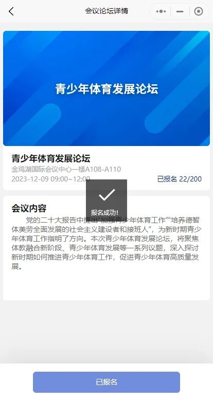 选择想要参加的会议论坛。