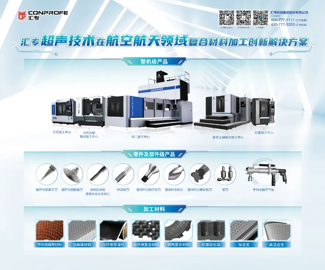 汇专受邀出席将作《汇专超声技术在航空航天领域复合材料加工创新解决方案》主题演讲。为解决航空航天领域高端制造难题,汇专实现技术攻关,有效突破复合、难加工金属等材料加工难点、痛点,方案具备延长刀具寿命、提升工件表面质量、提高加工效率等优势,现诚邀您莅临论坛现场与我们深度交流!