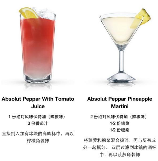 另一种喝法是“混合伏特加”(mixedvodka),乃伏特加酒加浓缩果汁或兑其他软饮料或低度酒混合而成,长杯盛放,慢慢品味。