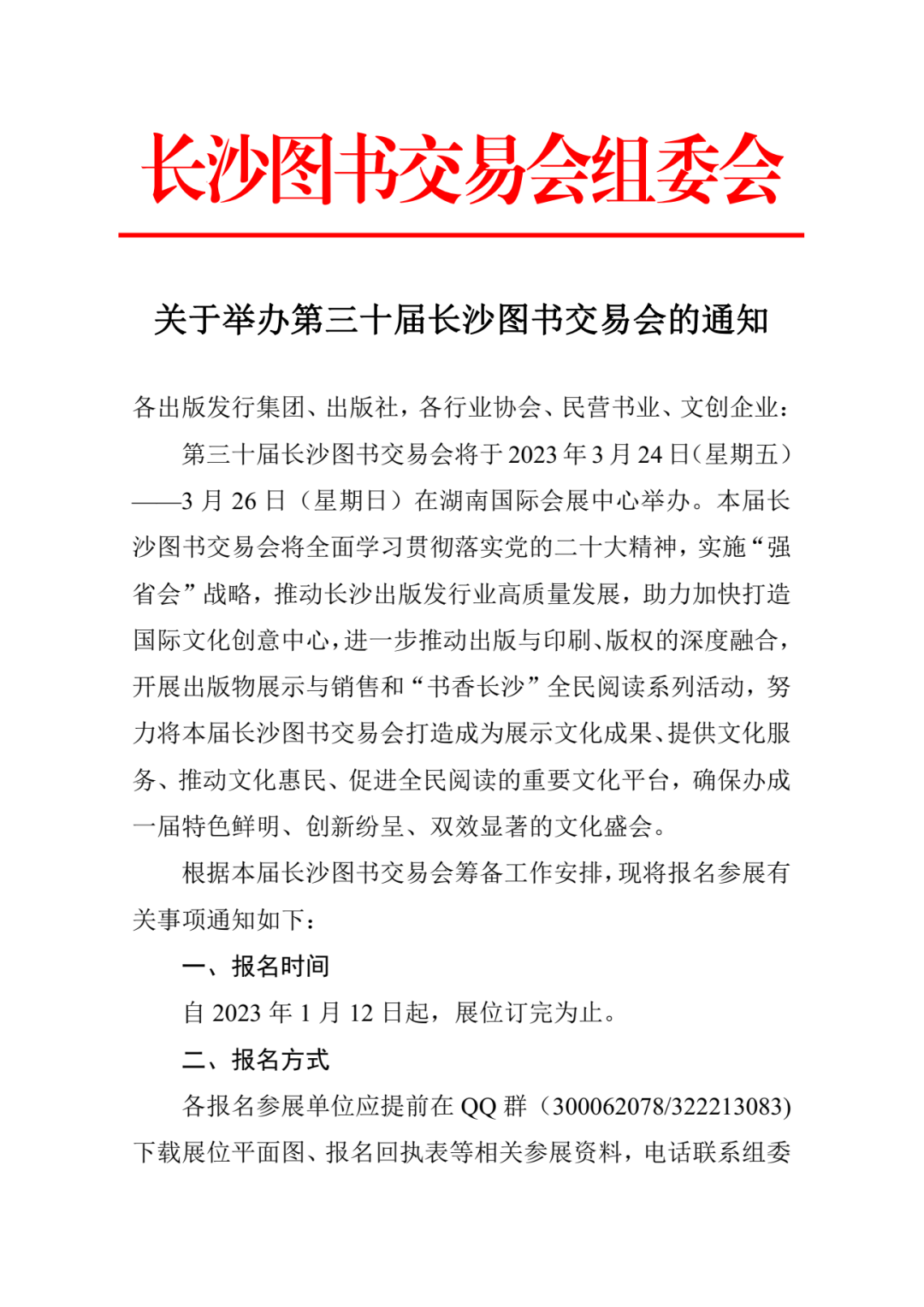 关于举办第三十届长沙图书交易会的通知