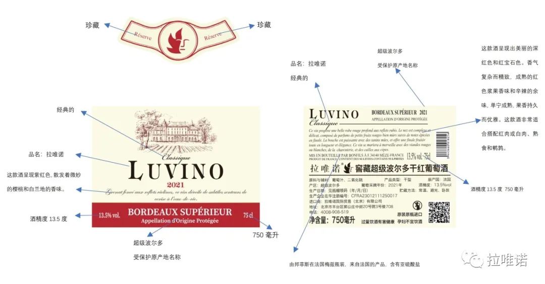 除了基础的信息外,酒标上还会经常出现一些与葡萄酒的级别、类型、风格等相关的信息。这些信息有助于消费者进一步了解葡萄酒的风味风格,从而挑选到自己喜欢的酒款。