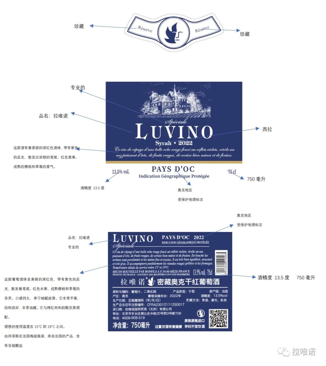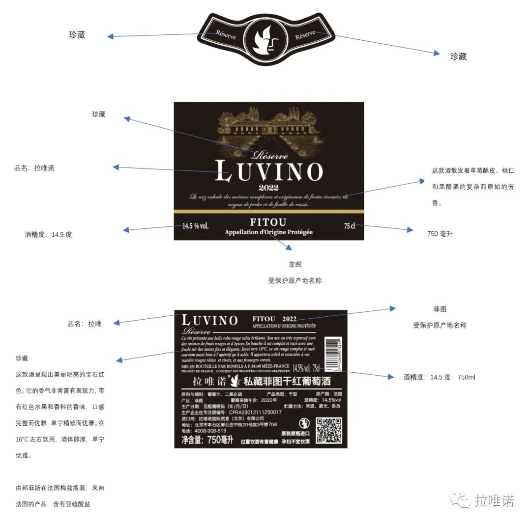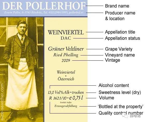 总的来说,酒标上标示出的所有信息都是有法律规定的。我们也可从中看出,酒标上的其他信息已经暗含了此酒所用的酿酒葡萄品种。