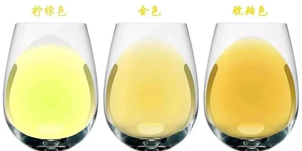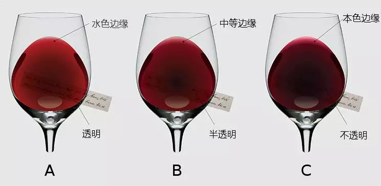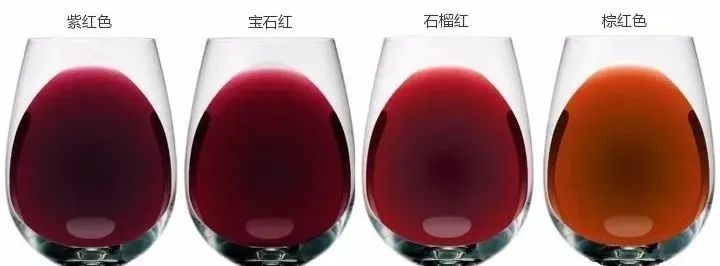 注:葡萄酒的颜色深淡首先取决于葡萄品种,不同的葡萄品种所酿造的葡萄酒颜色深淡是不同的。其次是陈年时间。