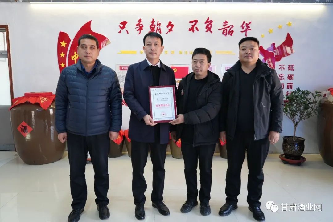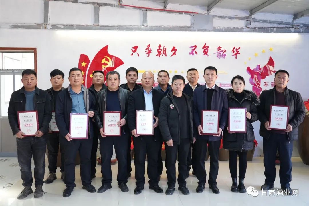 临夏州酒业协会会长唐占轩一行7人,来到永靖县炳灵泉酒厂,为永靖县2023年新当选的会员单位颁发《临夏州酒业协会第三届理事会会员单位》荣誉牌匾。参加本次活动的有: 临夏州酒业协会秘书长贾怀辉,副秘书长金发才,常务理事石林等,以及12位永靖县酒类生产、批发单位负责人。本次被授牌的单位是:副会长永靖县振荣商贸公司董事长刘国珍 ;常务理事永靖炳灵泉白酒公司董事长孔维亮 。