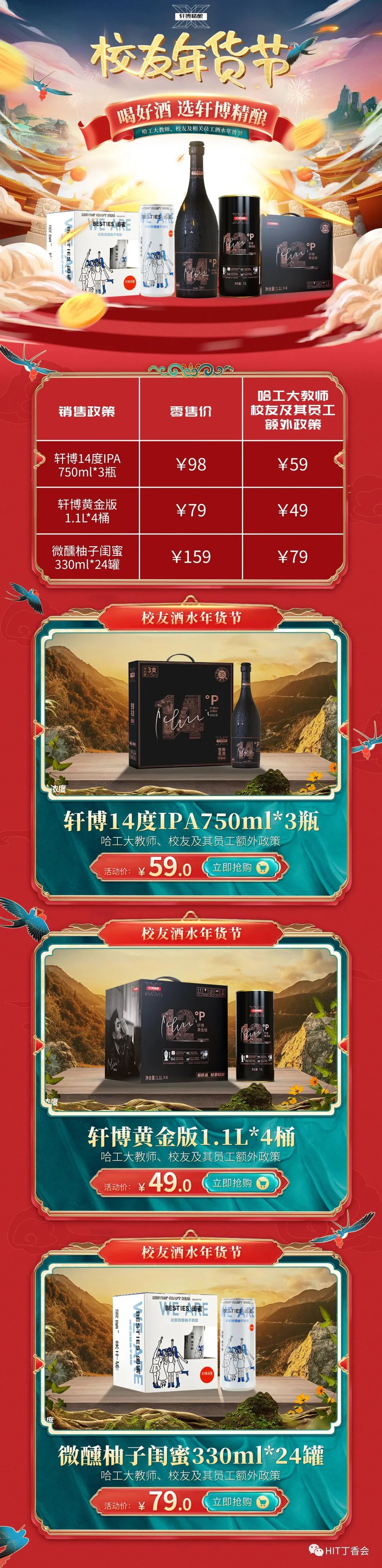 借此活动+本轮政府投资补贴,为广大哈工校友团提供便利的年货酒水福利,推出一系列补贴优惠,欢迎大家选购。