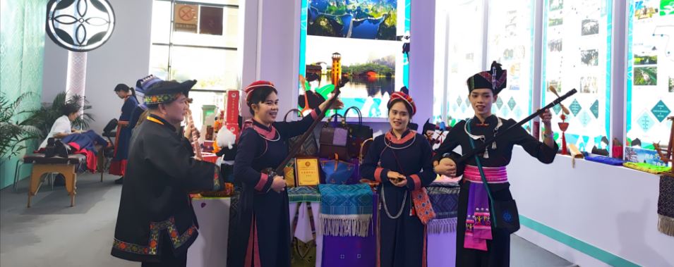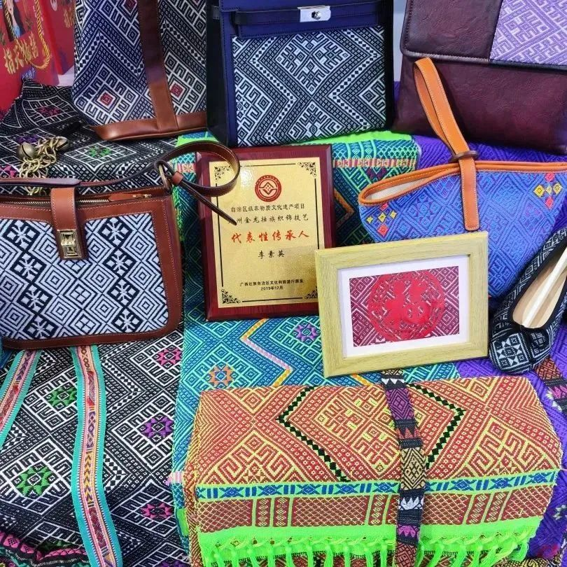 近日,由自治区文化和旅游厅、自治区商务厅、南宁市人民政府联合主办的2023年广西文化旅游博览展在南宁举办。龙州县文化和旅游行政部门、粤桂协作投入社会帮扶资金建设的李素英民间工艺品制作专业合作社以及龙州金龙壮族织锦技艺代表性传承人李素英参加了此次博览展。