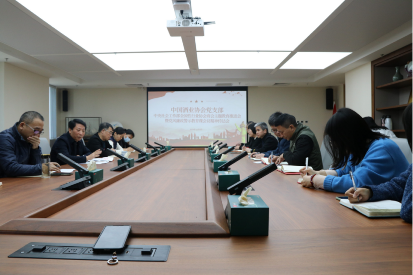 12月4日,按照中央社会工作部要求,以及中国轻工联党委贯彻和落实会议精神要求,中国酒业协会党支部书记王琦主持召开中国酒业协会党员干部会议,传达中央社会工作部全国性行业协会商会主题教育推进会暨党风廉政警示教育课会议精神,贯彻刘钊组长、柳拯副部长讲话要求。