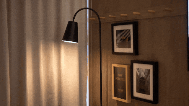 温柔的落地灯搭配质感的挂画,小清新风让人眼前一亮,调整好位置,拍照也超出片哦。