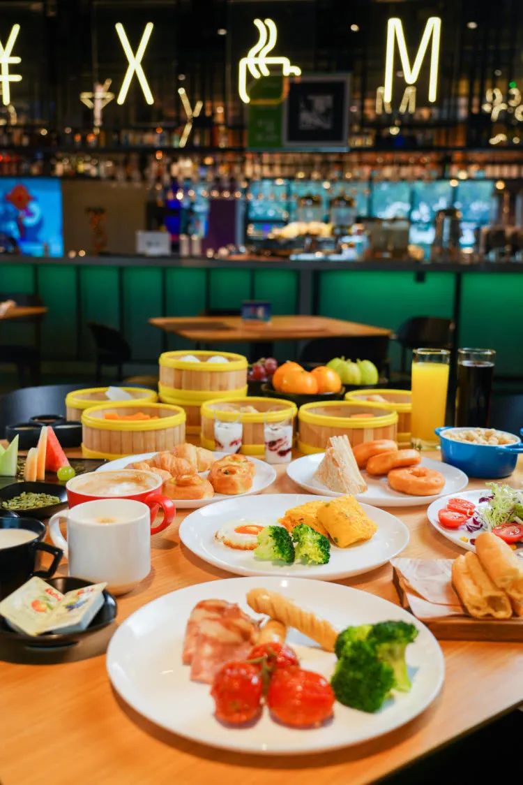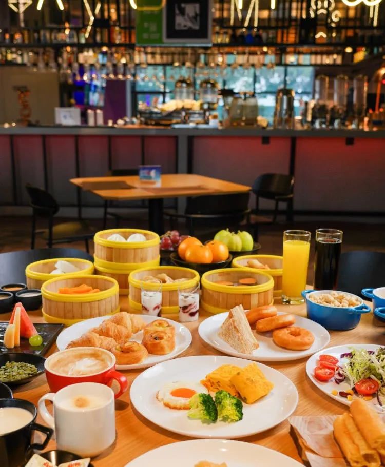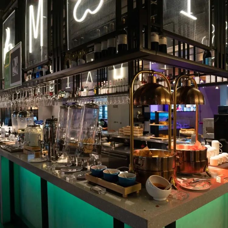 档口摆放的整整齐齐,边选心仪的早餐,边欣赏流光溢彩的餐厅环境,相信在这样的餐厅环境里,用餐也会更有幸福感!