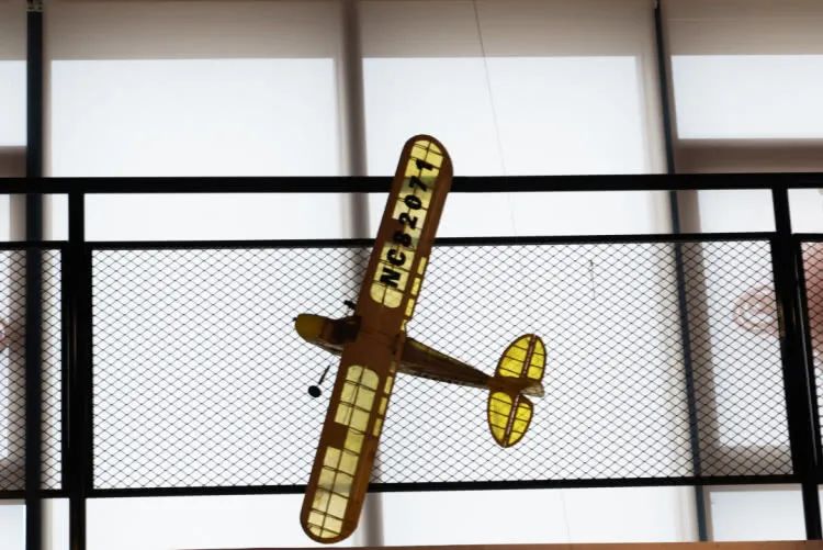 酒店一层分别为休闲区和餐厅区,以吧台为中央分界线,功能性划分的很清晰明了,工业风的设计风格,让酒店大堂区通透性高,一眼望过去,视野几乎没有阻挡,飞机元素遍布,观赏性高,还有海洋球池哦。