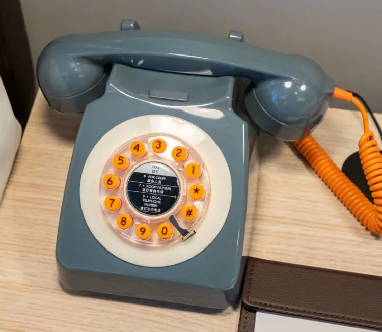 连通房的房间布局,电视机、茶几、休闲椅,复古电话、文件夹、mini小音箱等无一不让人满意。