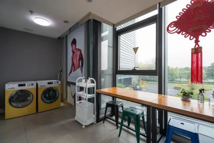 健身房旁边就是洗衣房,干净整洁的房间,配色非常小清新,靓丽的颜色,让等待的时间都变成了享受。