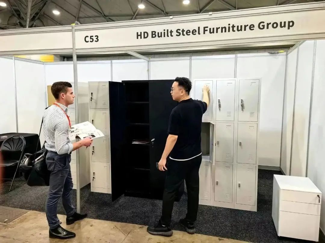 展会中,华都展出的新品工具柜、储物柜、车库柜、更衣柜深受青睐,客商络绎不断。