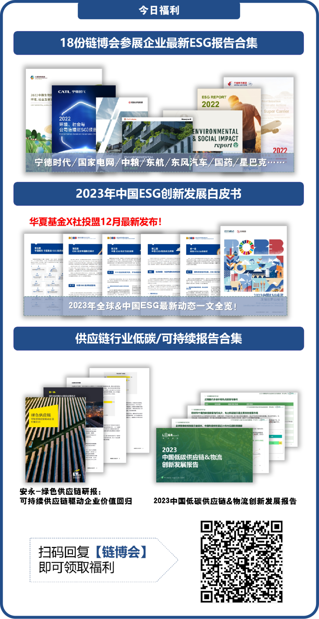 供应链行业低碳/可持续报告合集扫码回复【链博会】即可获得