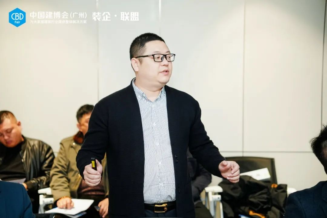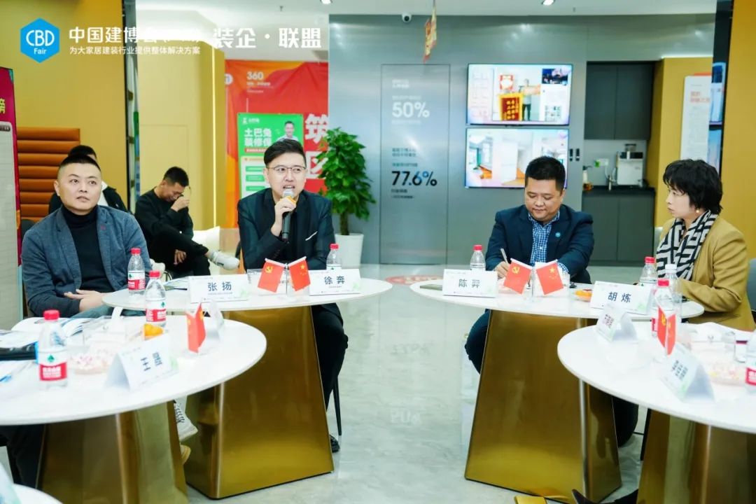 ▲铭筑装饰董事长 徐奔在随后的恳谈会环节,铭筑装饰的相关负责人与各位部品企业代表从多个维度展开研讨,直击业界关切的深度话题。▲“装企•联盟”参访团队在铭筑装饰热烈恳谈